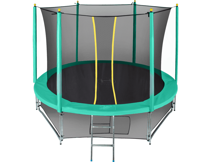 - Комплектация: батут, защитный мат, защитная сеть, нижняя защитная сеть, лестница