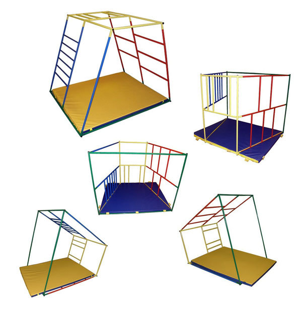 - Каркас (наклонная шведская стенка с отверстиями в верхней и нижней части, лестница «Окошки» с большими расстояниями между ступенями, расположенными в шахматном порядке; рукоход на четыре ступеньки с окошком для спрыгивания в верхней части каркаса)
