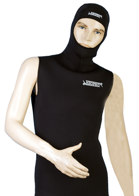 Майка со шлемом изготовлена из неопрена толщиной 1,5 мм. Данная модель легко надевается, быстро высыхает и обеспечивает герметизирующий эффект.