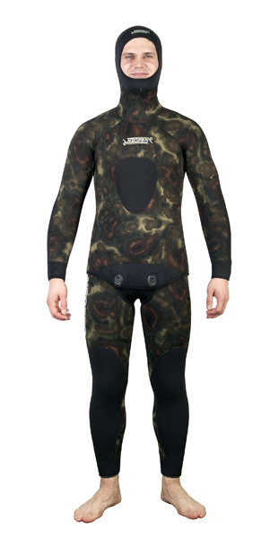 Классический гидрокостюм с нейлоновым дублированием. Окраска выполнена в камуфляжном стиле.