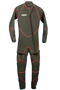 Раздельный костюм из двух частей толщиной 7,5 мм изготовлен из неопрена и предназначен для активного отдыха, рыбалки, охоты и дайвинга. Куртка оснащена молнией и липучкой-фиксатором, штаны Long-John с удлинённой верхней частью обеспечивают дополнительную защиту от холода. Усиленные наколенники из материала Duratex и обработанные края на лодыжках и запястьях повышают износостойкость. Возможен выбор цвета вставок и ниток для индивидуального оформления.