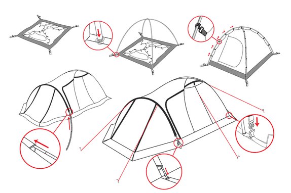 - Клипсы для крепления внутренней палатки к дугам обеспечивают быструю установку.