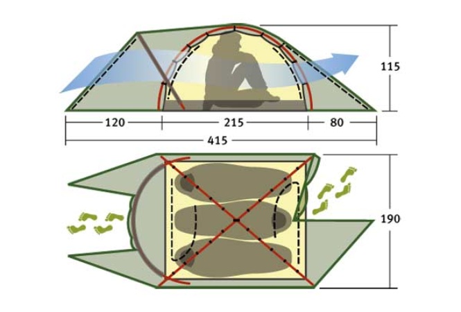- Внутренняя палатка оснащена замками для защиты от сквозняков и обеспечения комфорта во время сна.