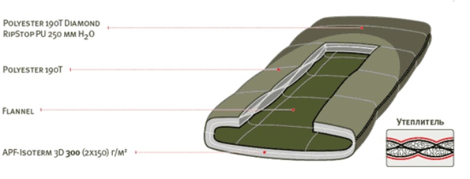 - Утеплитель: используется APF Isoterm 3D — синтетическое волокно с воздушными каналами и силиконовым покрытием, что предотвращает сваливание и впитывание влаги.