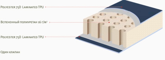 - Материал верха: полиэстер 75D с ламинированием TPU