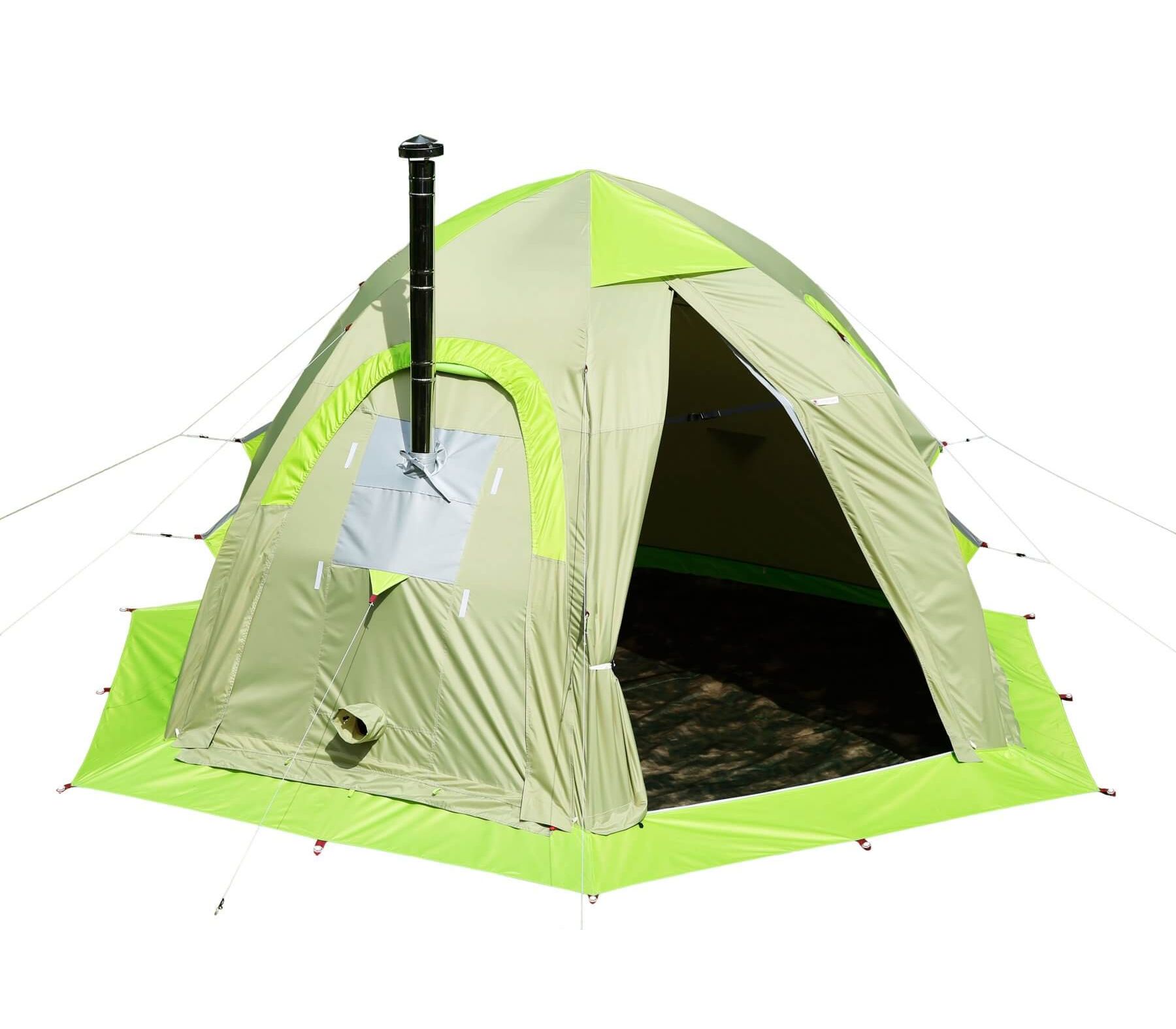 - Система установки печи позволяет использовать любые туристические печи, предназначенные для организации походной бани.