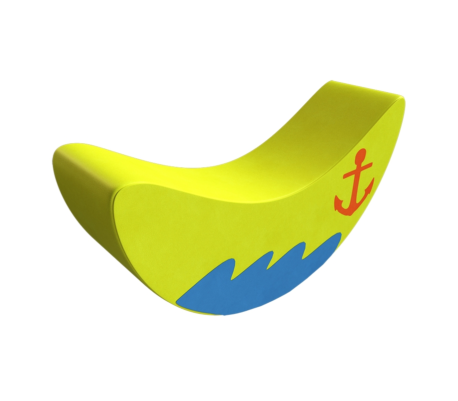 Контурная игрушка «Волна-качалка» - мягкая игрушка в виде дуги с морским рисунком. Рекомендуются для тренировки вестибулярного аппарата. В процессе игры ребенок укрепляет мышцы ног и спины. Может быть использована как дополнение к наборам из мягких модулей. Подходят для детских игровых комнат в общественных местах, дошкольных и младших школьных учреждениях, а также можно использовать дома и на даче. Возможна игра одновременно двоим детям.