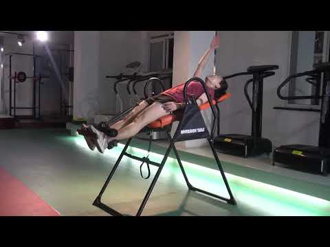Инверсионный стол для занятий в домашних условиях. Складная модель XJ-I-02CLB. Максимальный вес пользователя 136 кг. Регулировка под рост пользователя до 198 см. Регулируемый фиксатор под голеностоп. Отрегулировать необходимый угол отклонения возможно с помощью ремешка, лишнее выбирается с помощью пряжки.